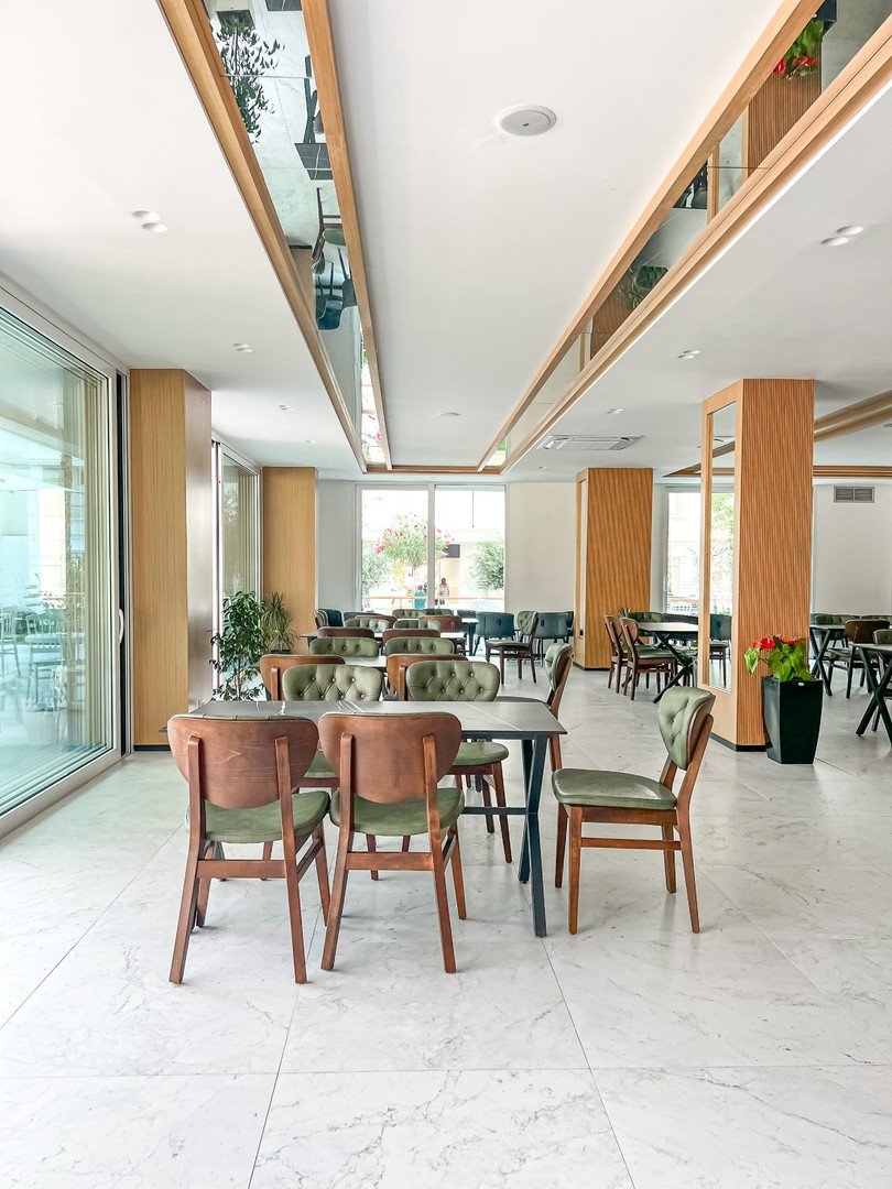 Az étterem büfé formájában kínál nemzetközi ételeket, ahol a gyermekek számára etetőszékek is elérhetők, valamint vegetáriánus ételek is rendelkezésre állnak. A vendégek kényelmét továbbá két bár szolgálja.